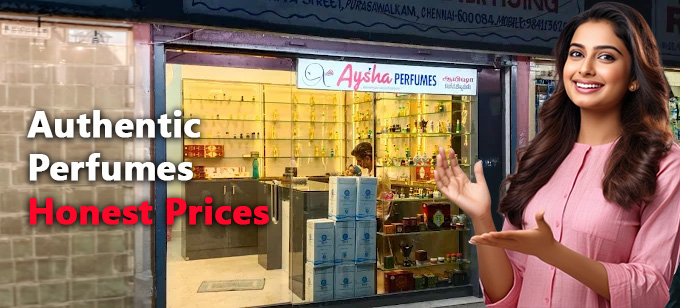 Aysha Perfumes is a trusted fragrance store based in Purasaiwakkam, Chennai, offering a carefully curated collection of perfumes and attars for everyday use and special occasions.